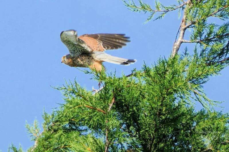 Deze beauty van een roofvogel zat een stukje verderop hoog in de boom