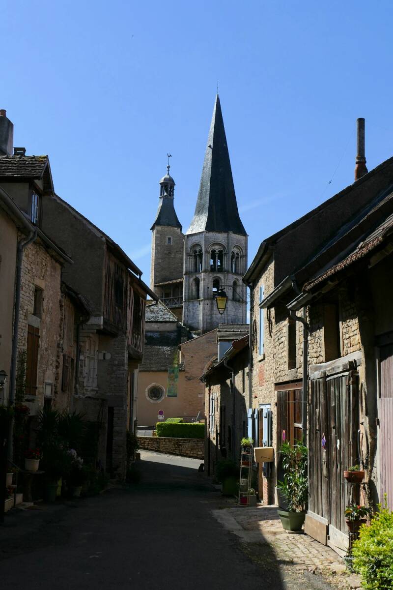 St Gengoux is een klein middeleeuws stadje, we zetten de fietsen neer en gaan wandelen beetje klimmen op gladde keien ,als het geregend heeft valt dat niet mee.
