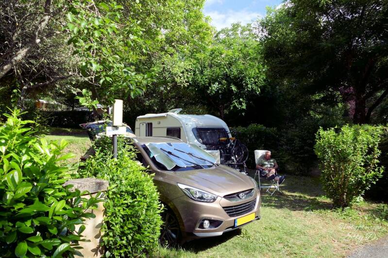 Het terrein is parkachtig er loopt een pad achter de camping ,en kun je lopen naar Belves zo`n 2 en halve km...en daarna zal het toch klimmen worden.